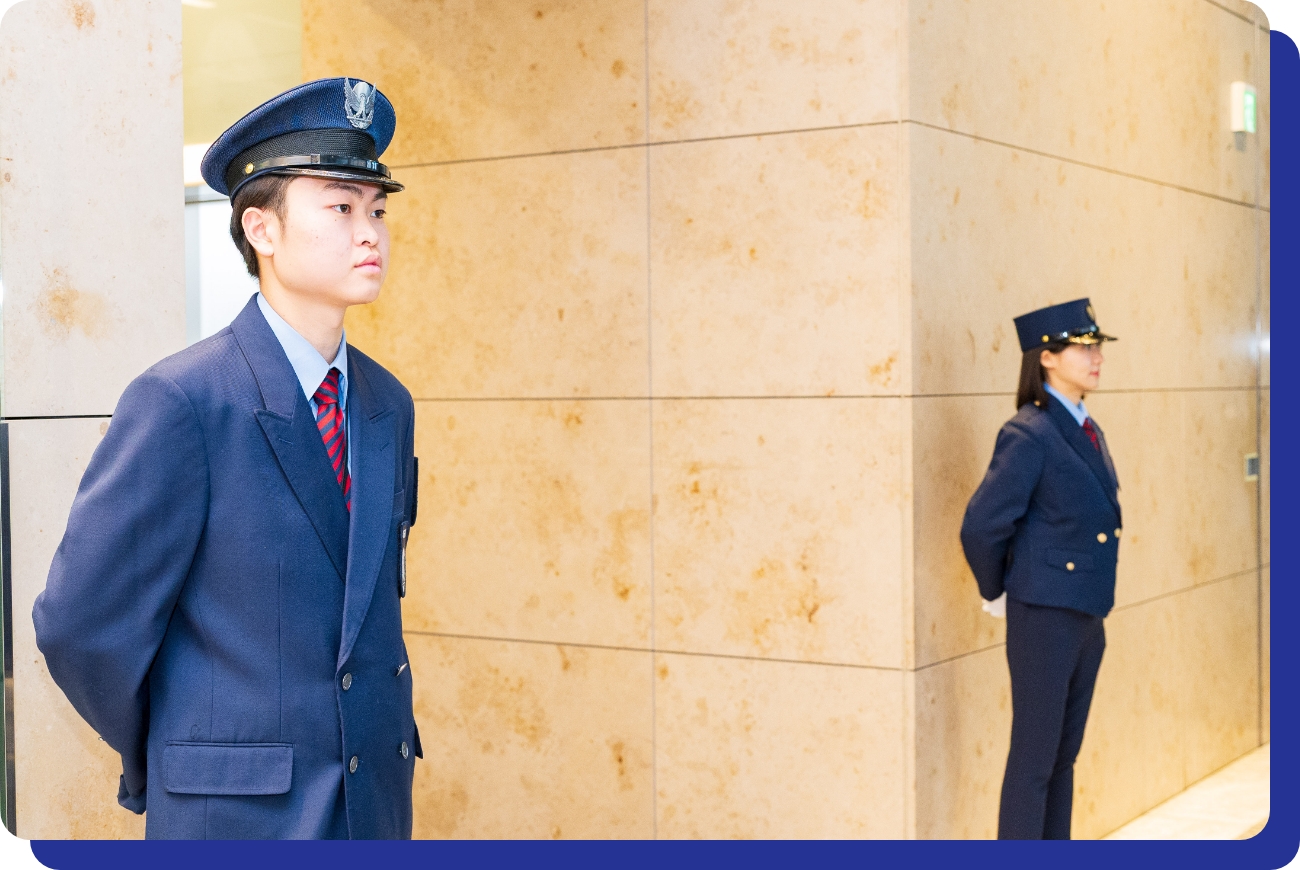警備には、テレビCM等でよく知られるホームセキュリティのほか、オフィスや商業施設での「施設・機械警備」、工事現場やイベントの「交通誘導・雑踏警備」、現金などを運ぶ「運搬警備」、ボディーガードの「身辺警備」等がありますが、弊社は違います。